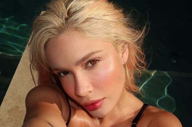 Karoline Lima bomba com registros sem maquiagem e com vestido chamativo
